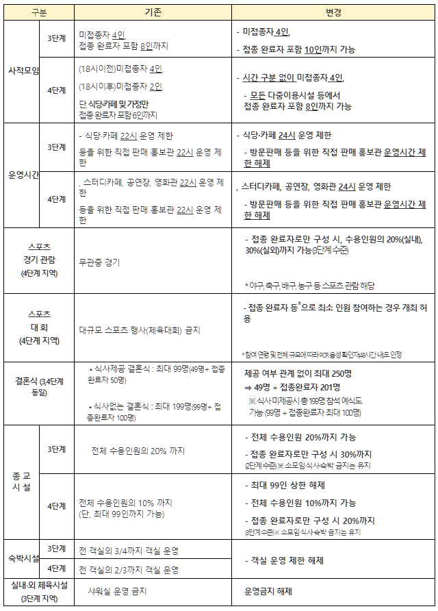 3단계 거리두기 지역은 미접종자 규모는 4인으로 기존과 동일하며